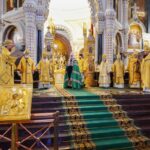 В этот знаменательный день Святейший Патриарх Кирилл совершил в интронизационных облачениях Божественную литургию в кафедральном соборном Храме Христа Спасителя в Москве.