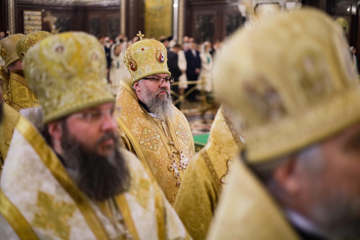 Его Святейшеству сослужили члены Священного Синода и сонм архиереев Московского Патриархата, в числе которых был архиепископ Южно-Сахалинский и Курильский Никанор.
