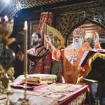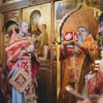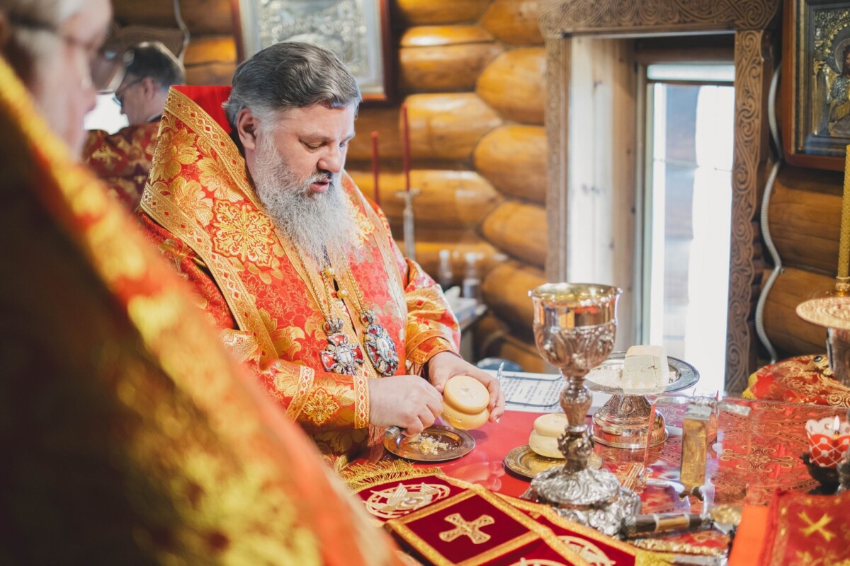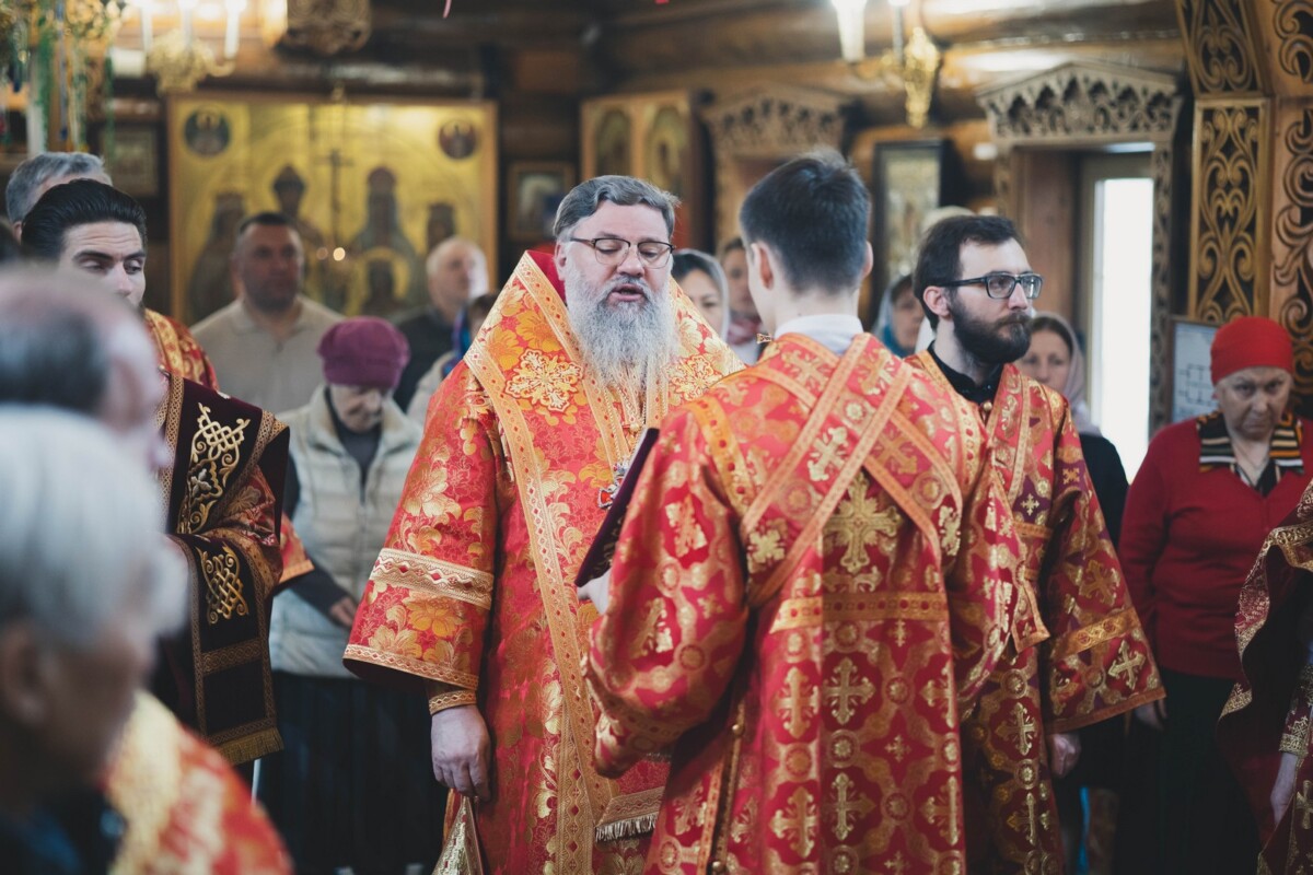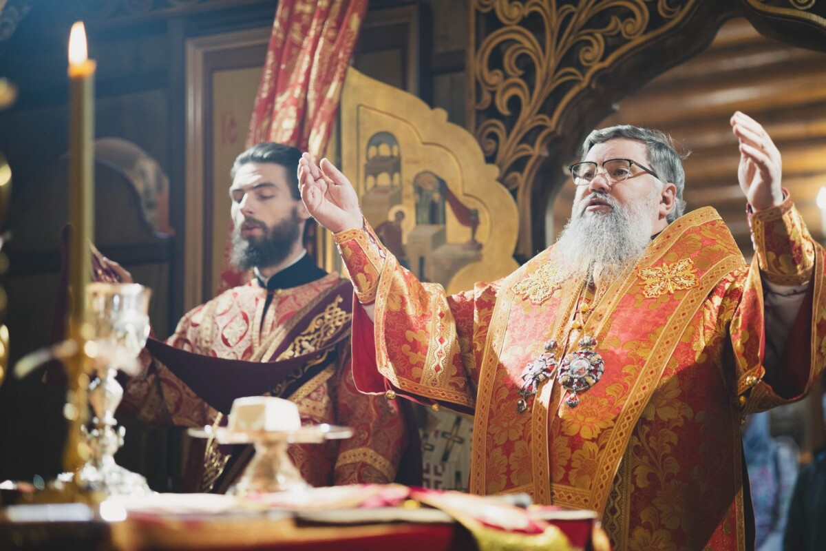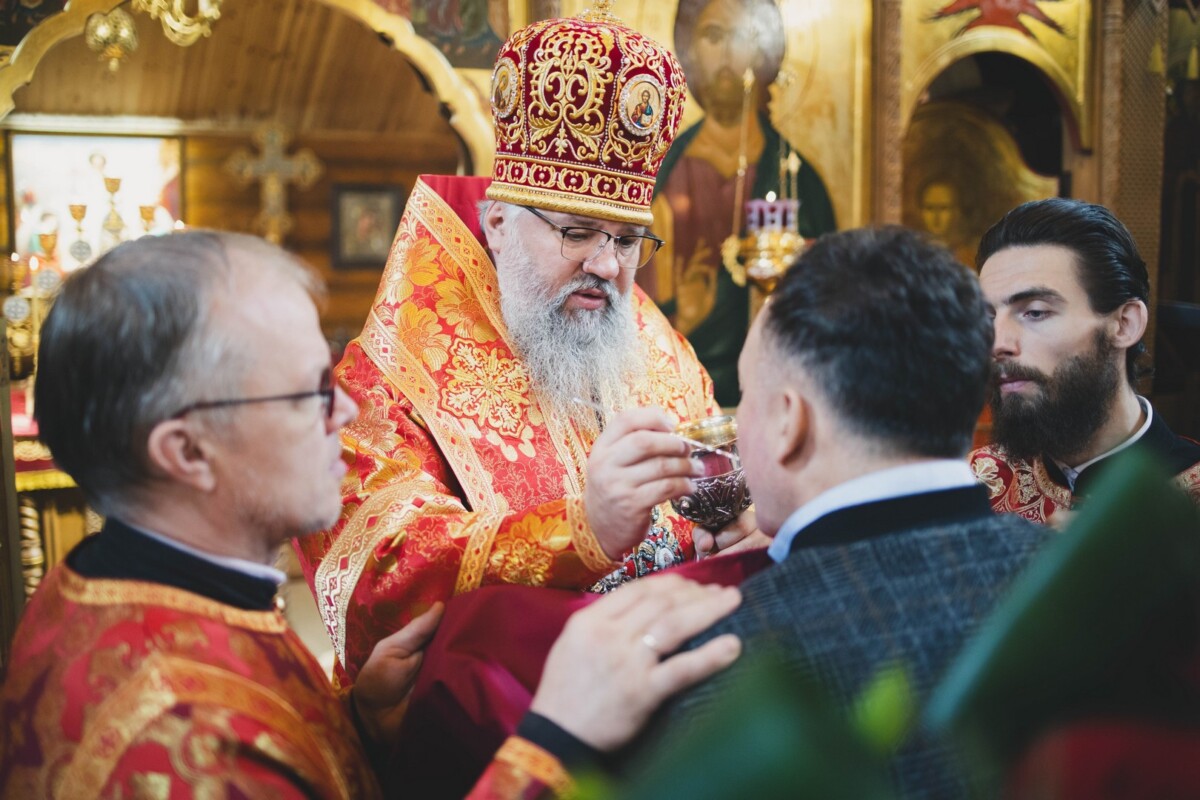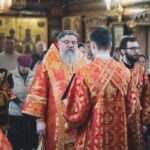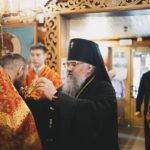 За Божественной литургией Его Высокопреосвященству сослужили: секретарь епархии, настоятель Воскресенского собора г. Южно-Сахалинска иеромонах Аполлинарий (Обухов); благочинный Южно-Сахалинского городского благочиния, настоятель храма протоиерей Павел Алексеев; благочинный Южно-Сахалинского окружного благочиния, настоятель Иннокентьевского храма г. Южно-Сахалинска протоиерей Виктор Горбач; настоятель Серафимовского храма г. Анивы протоиерей Димитрий Юзеев; клирик Воскресенского собора островной столицы иерей Сергий Немодин.