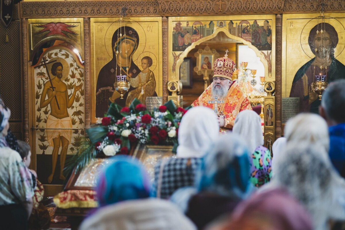 По окончании Литургии был совершен благодарственный молебен, после чего архипастырь обратился к присутствующим со словом проповеди.