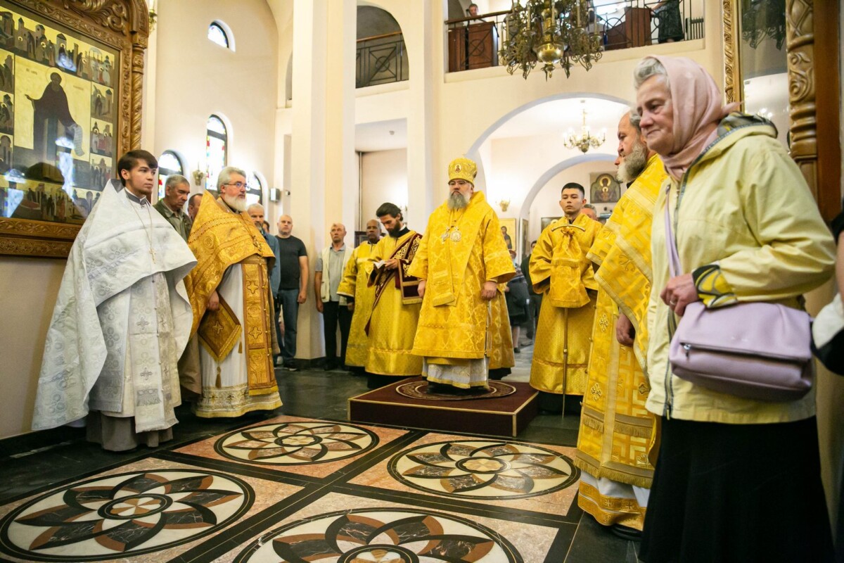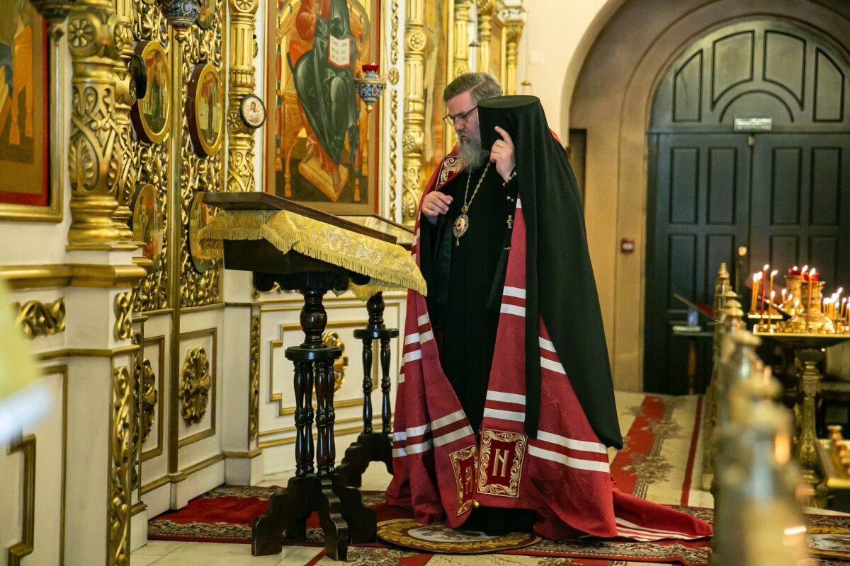 На сугубой ектении были вознесены особые прошения, архипастырь прочитал молитву о святой Руси.