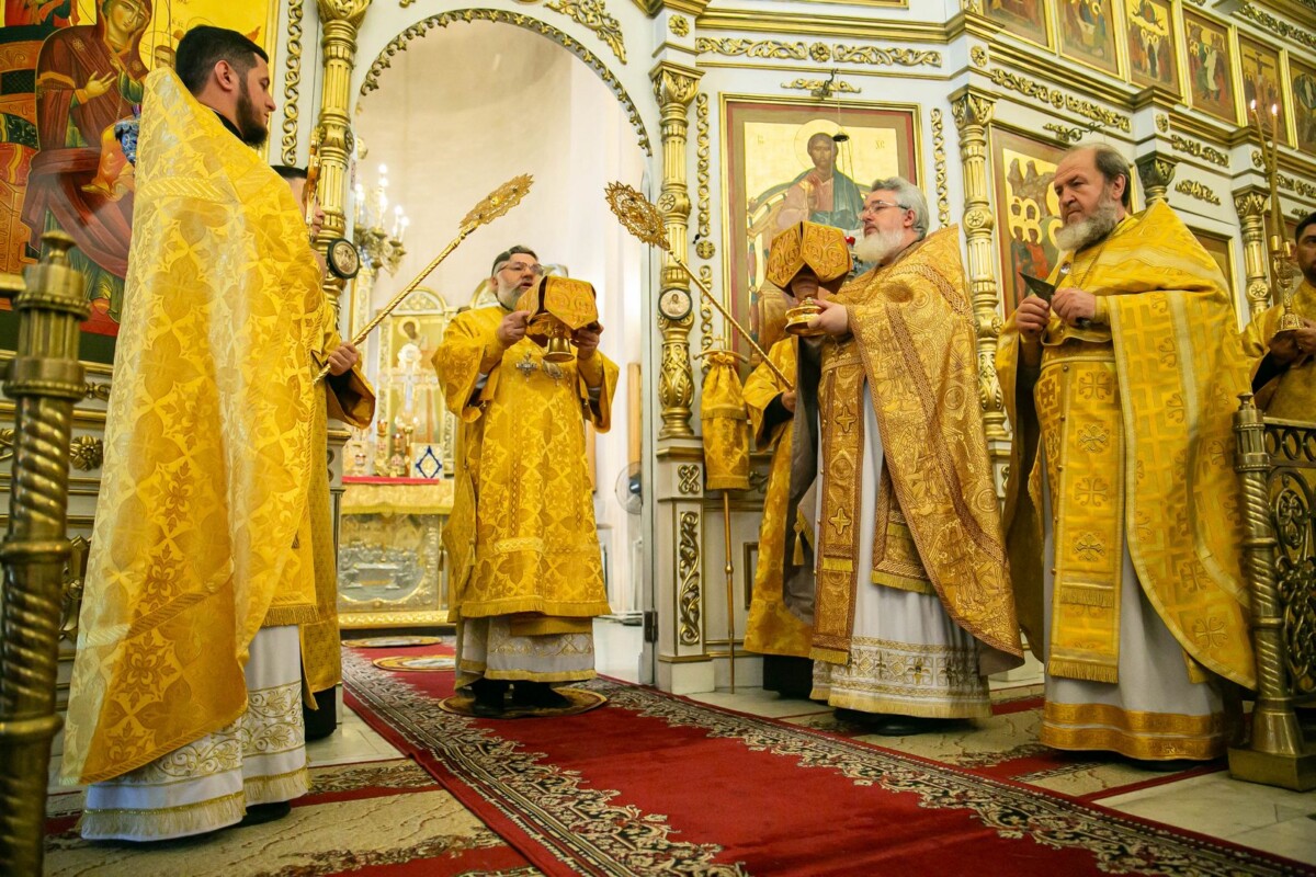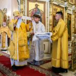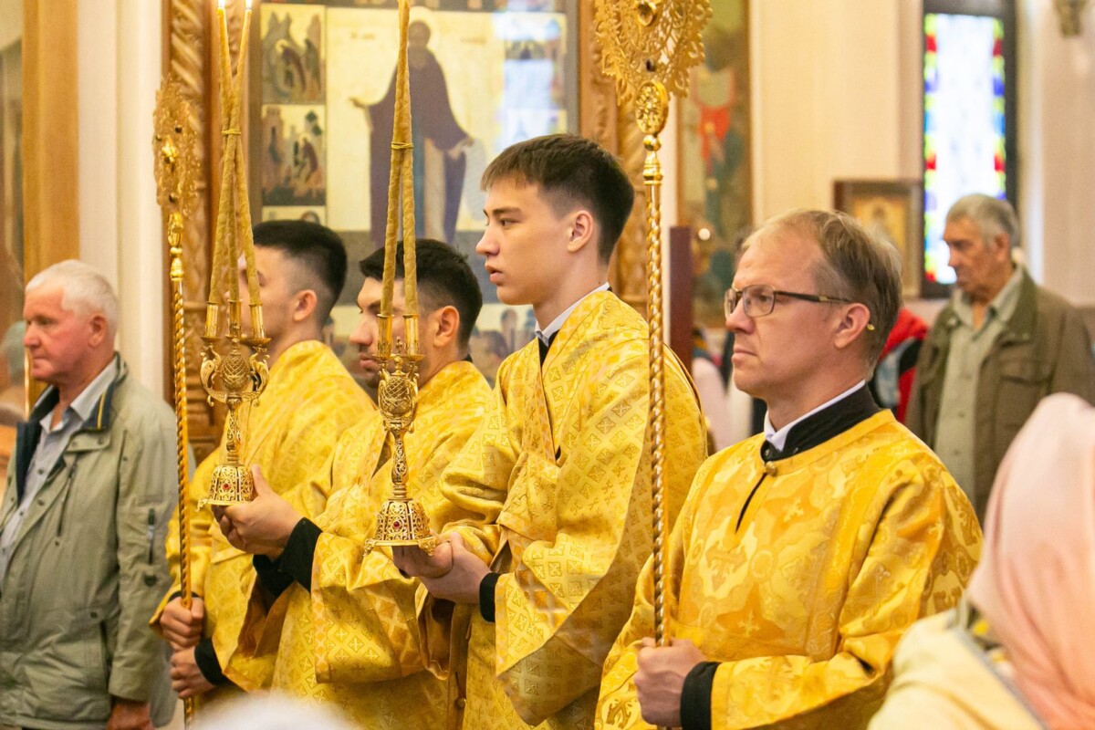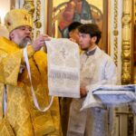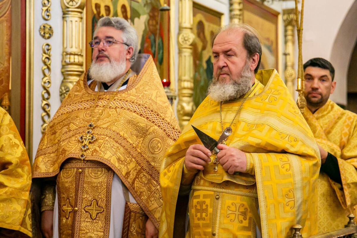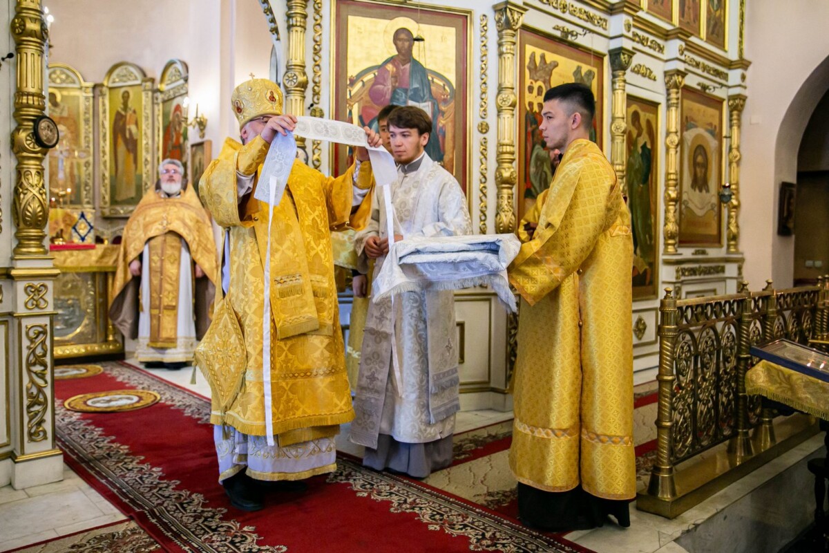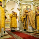 Его Высокопреосвященству сослужили секретарь епархии, настоятель собора иеромонах Аполлинарий (Обухов), ключарь собора иерей Владислав Ивлютин, штатное духовенство.