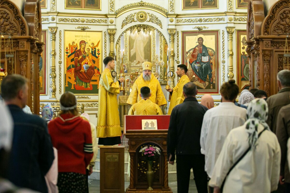 В завершение богослужения архиепископ Никанор совершил праздничный молебен апостолам Петру и Павлу.