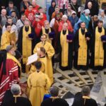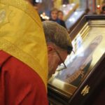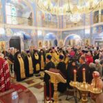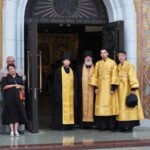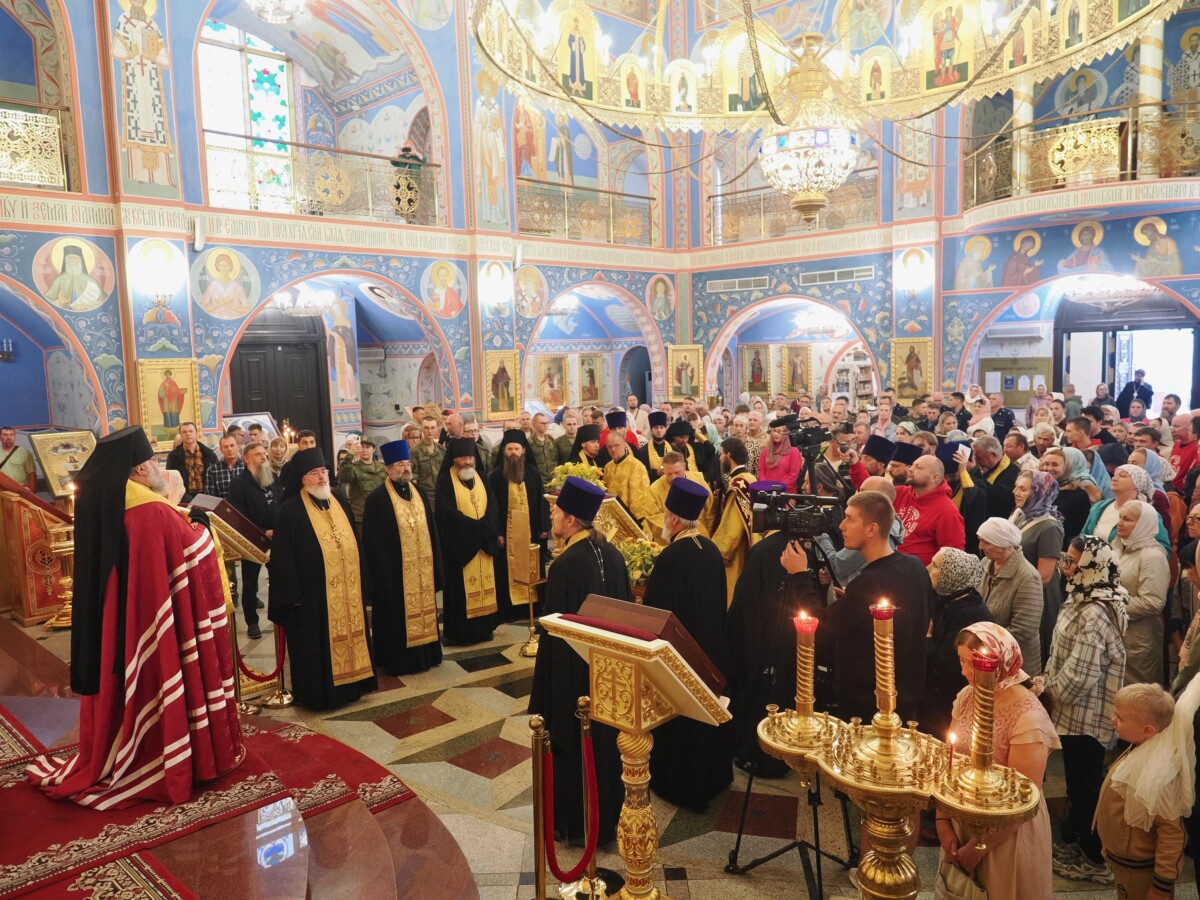 Далее ковчег с частицей мощей был доставлен в кафедральный собор Рождества Христова, где архипастырь возглавил молебное пение святителю Тихону.