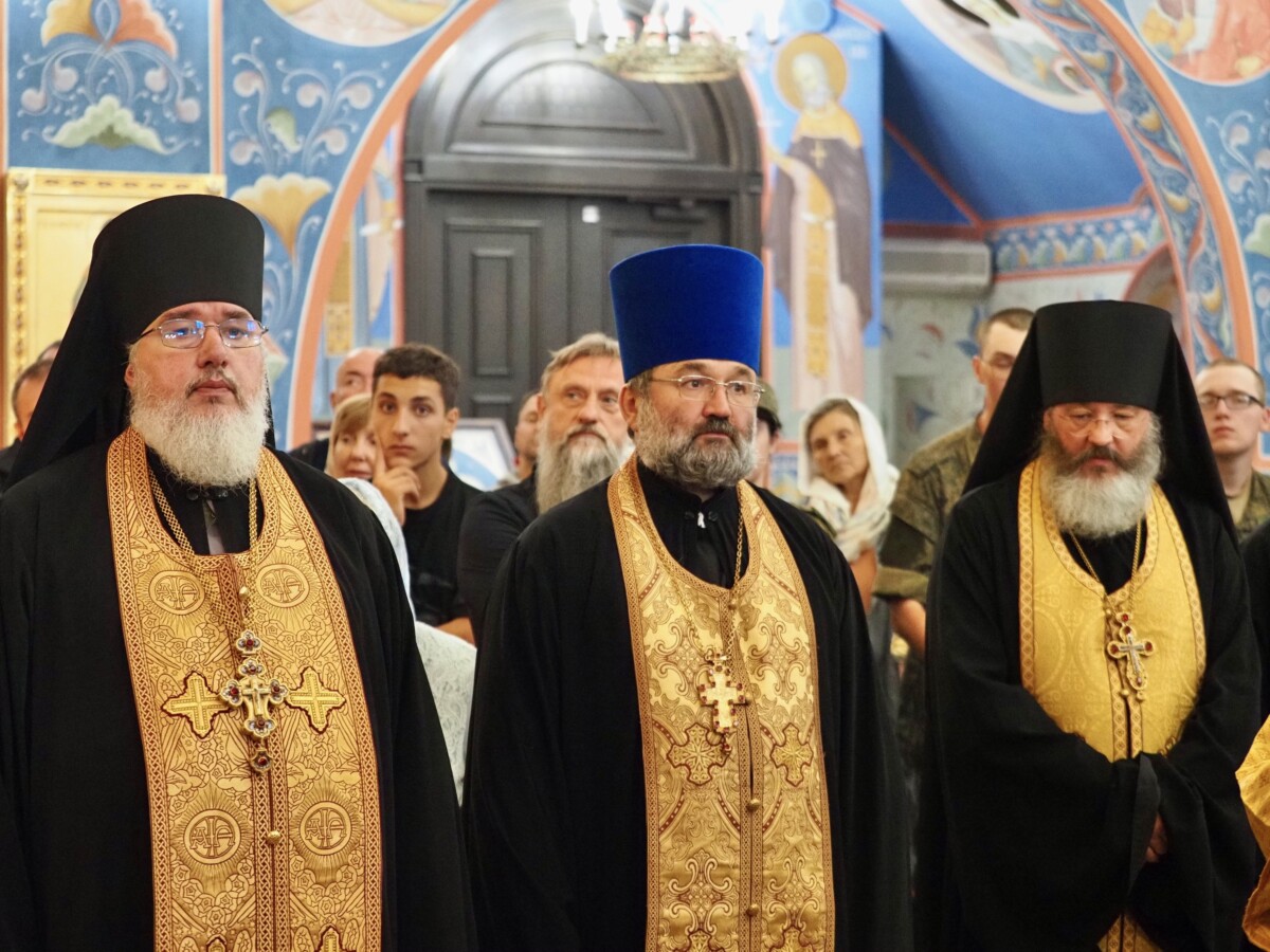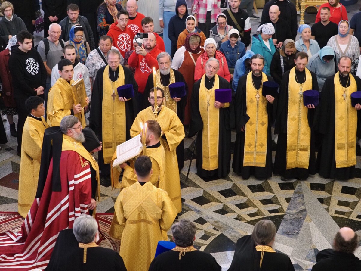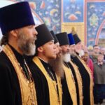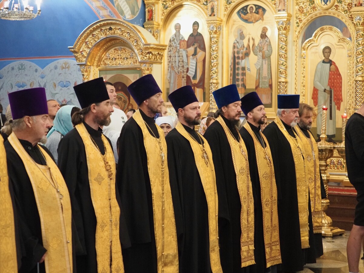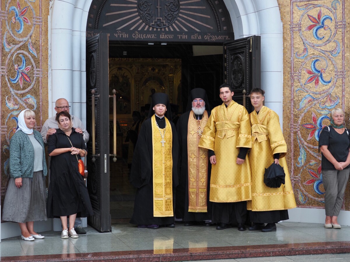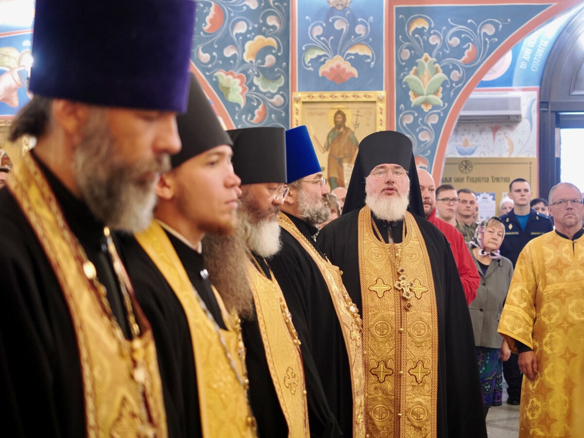 Его Высокопреосвященству сослужили секретарь епархии, настоятель Воскресенского собора г. Южно-Сахалинска иеромонах Аполлинарий (Обухов), благочинный Южно-Сахалинского городского благочиния, настоятель Никольского храма г. Южно-Сахалинска протоиерей Павел Алексеев, настоятель храма свв. новомучеников и исповедников Российских в Бутово протоиерей Кирилл Каледа (Московская городская епархия), настоятель Патриаршего подворья благоверного великого князя Александра Невского с. Троицкое протоиерей Сергий Мощенко, благочинный Долинского благочиния, настоятель Успенского храма г. Долинска протоиерей Вячеслав Каличава, ключарь кафедрального собора иерей Александр Брагин, заведующий канцелярией Южно-Сахалинского епархиального управления иеромонах Лавр (Немодин), настоятели и клирики храмов городского и окружного Южно-Сахалинских благочиний.